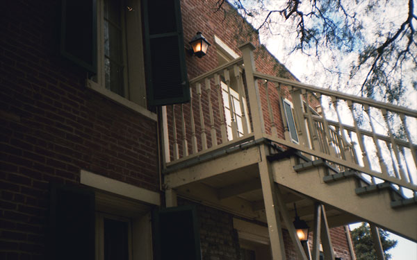 Do you notice anything unusual about the lamps on the building? Look closely.